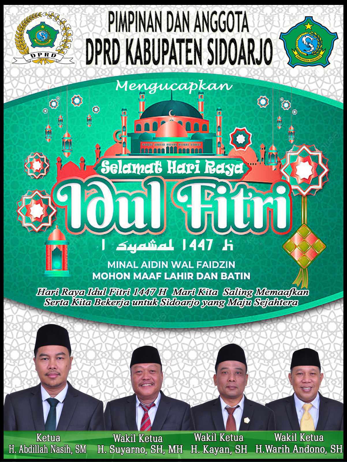 Pimpinan dan Anggota DPRD Kabupaten Sidoarjo, Mengucapkan Selamat Hari Raya Idul Fitri 1447 H/2026